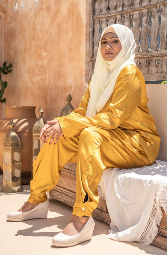 Curve Cuffed Pants in Arabian Gold & Pale Copper
