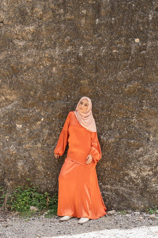 Curve A-Line Skirt in Pale Copper & Arabian Gold