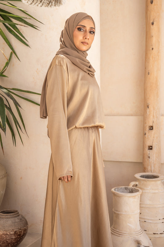 Curve A-Line Skirt in Pale Copper & Arabian Gold