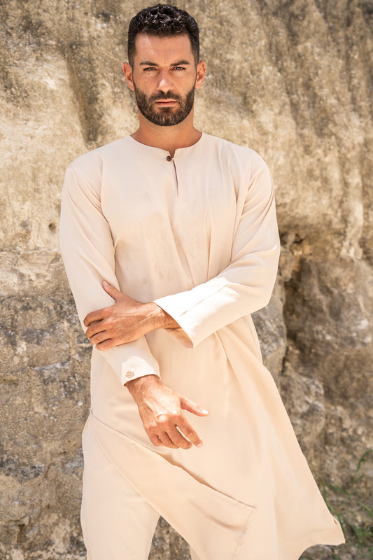 Satin Kurta Set Men In Almond