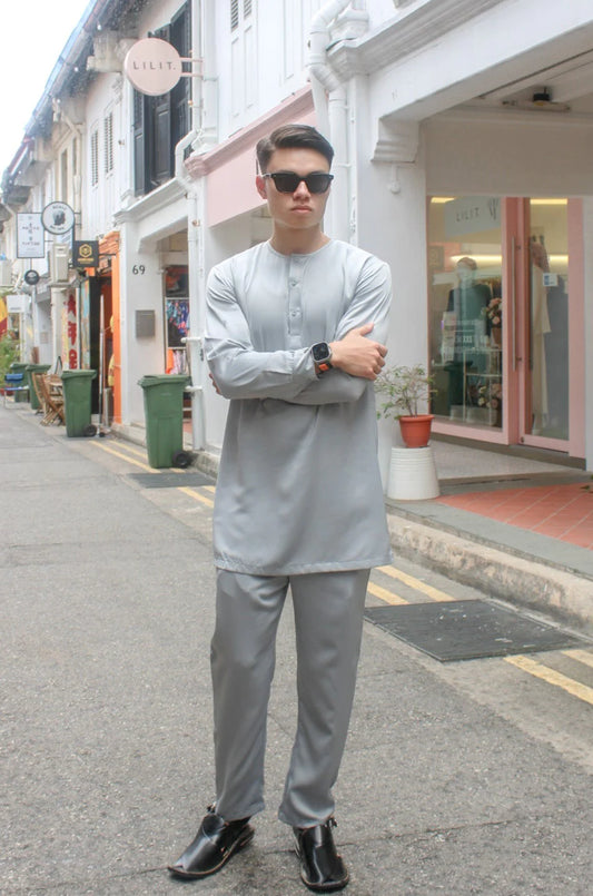 Satin Kurta Set Men In Steel