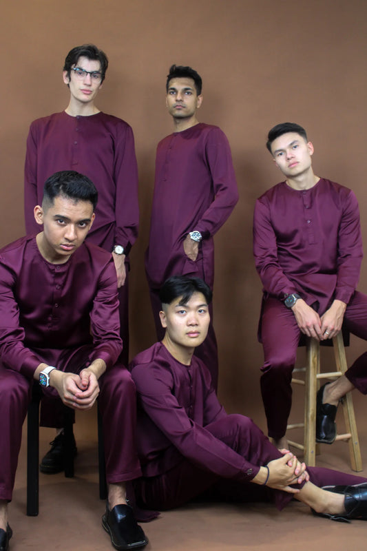 Satin Kurta Set Men In Jam Boo