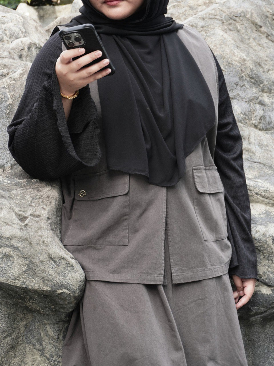 Perfect for daily wear or casual outings, its natural texture keeps you cool while maintaining a timeless aesthetic. Pair it with your favourite hijab for a complete look that’s easy to style and wear.